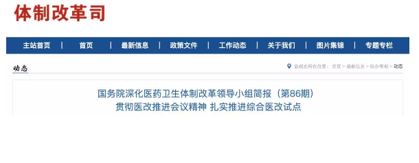 此前,在福建省三明市召開的綜合醫(yī)改推進現(xiàn)場會上,國務(wù)院領(lǐng)導充分肯定了福建省三明市推進綜合醫(yī)改的經(jīng)驗做法,要求11個綜合醫(yī)改試點省份加快復制推廣三明經(jīng)驗,推進醫(yī)改走深走實。