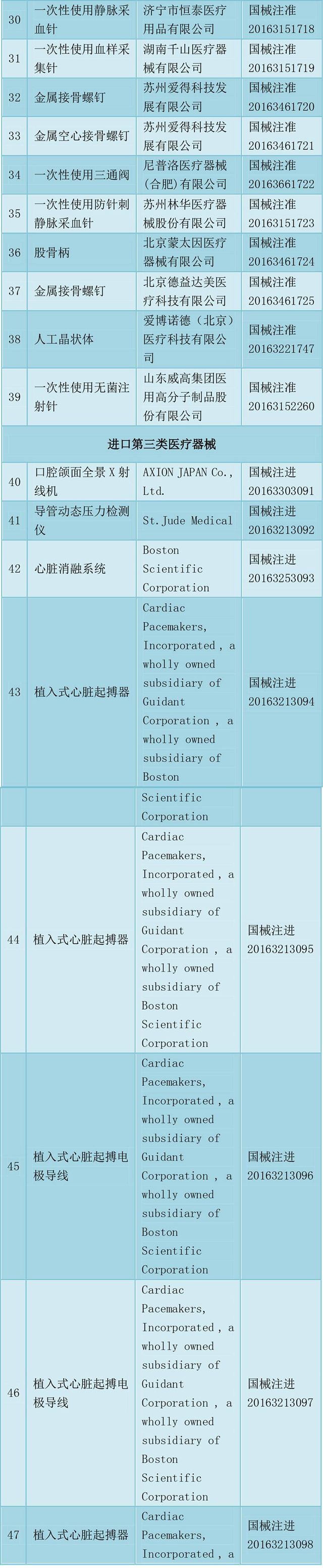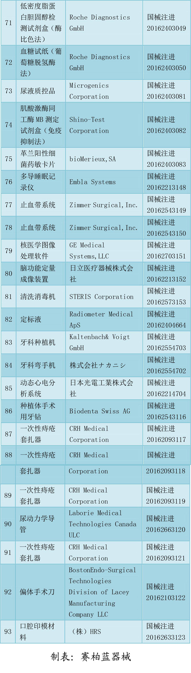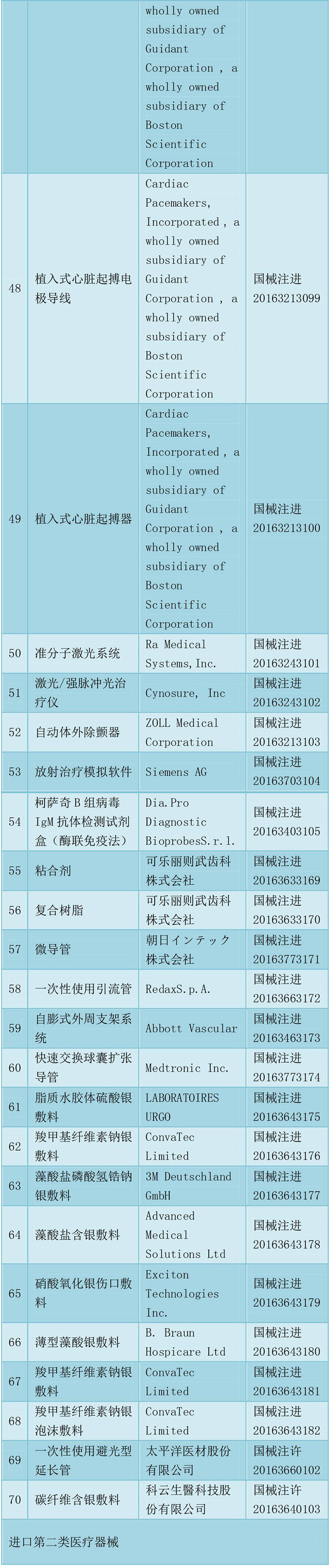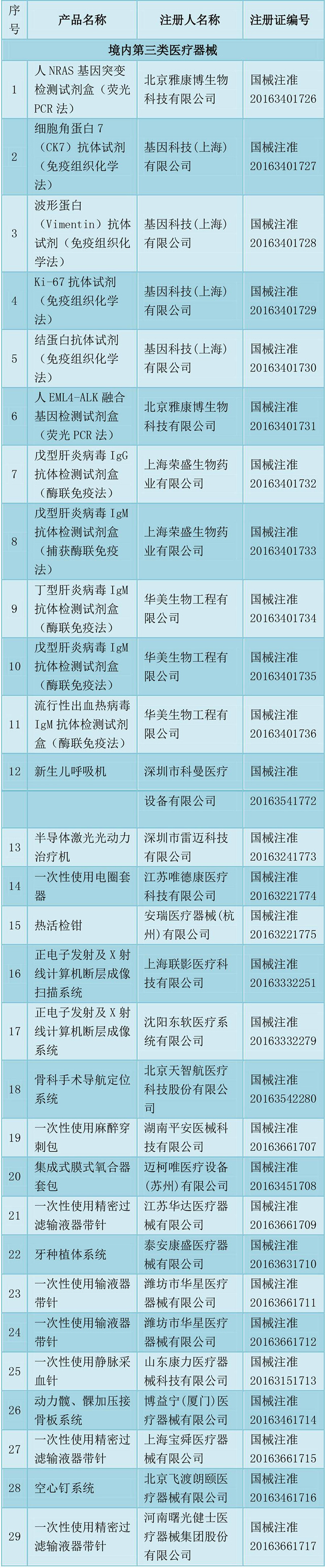 2016年11月批準注冊醫(yī)療器械產(chǎn)品目錄
