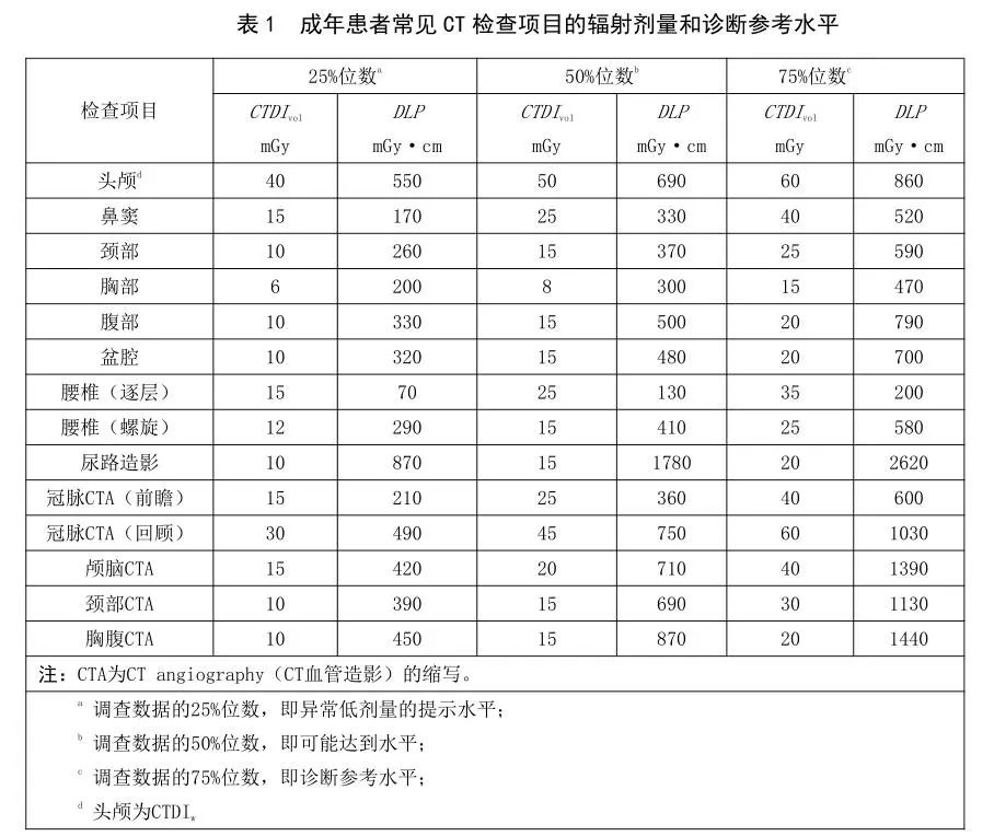 5、在臨床實(shí)踐中,如果患者的劑量經(jīng)常顯著超過(guò)相應(yīng)的診斷參考水平,則應(yīng)對(duì)該醫(yī)療過(guò)程和設(shè)備進(jìn)行檢查,以判斷放射防護(hù)是否實(shí)現(xiàn)最優(yōu)化;否則,則應(yīng)在確保獲取必需的診斷信息的同時(shí),盡可能降低患者的受照劑量。如果患者的劑量普遍低于調(diào)查數(shù)據(jù)的25%位數(shù),需要核查CT掃描是否能夠提供有用的診斷信息和給患者帶來(lái)預(yù)期的醫(yī)療收益。如果采用了先進(jìn)的成像新設(shè)備或重建算法,既能顯著降低患者劑量(低于調(diào)查數(shù)據(jù)的25%位數(shù)),影像質(zhì)量又能滿足診斷需求,則可以繼續(xù)醫(yī)療任務(wù),否則應(yīng)根據(jù)需要采取糾正行動(dòng)。