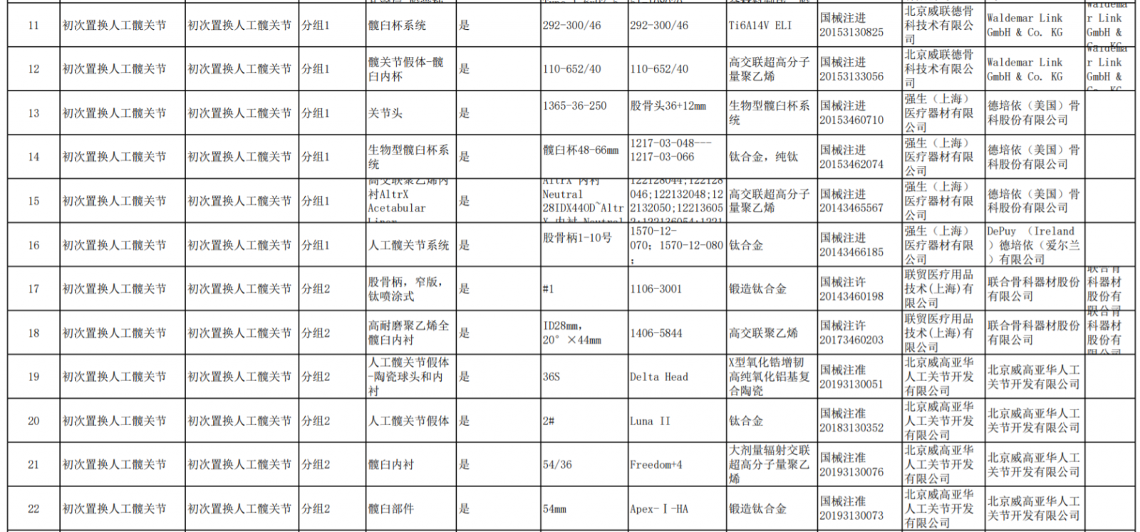 初次置換人工髖關(guān)節(jié)14家企業(yè)的14個產(chǎn)品平均降價86.26%;