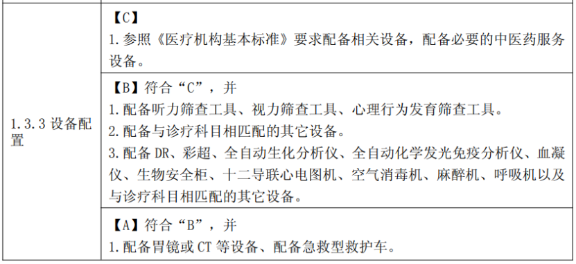 設(shè)備配置方面,《方案》還特別提到,要逐步改善硬件設(shè)施設(shè)備條件,結(jié)合??瓢l(fā)展需求,系統(tǒng)完善發(fā)熱門診、急診醫(yī)學(xué)科、住院部、醫(yī)技科室等業(yè)務(wù)用房條件,加快數(shù)字健康基礎(chǔ)設(shè)施建設(shè),改善醫(yī)療、信息化等設(shè)備和醫(yī)用車輛配置,改善停車、醫(yī)用織物洗滌、醫(yī)療廢物和污水處理等后勤保障設(shè)施。