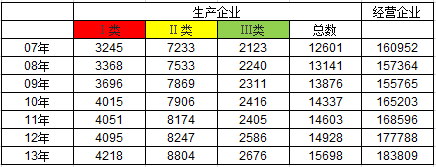 2007—2013中國醫(yī)療器械生產(chǎn)/經(jīng)營企業(yè)數(shù)量統(tǒng)計(jì)