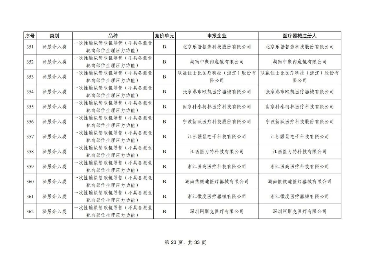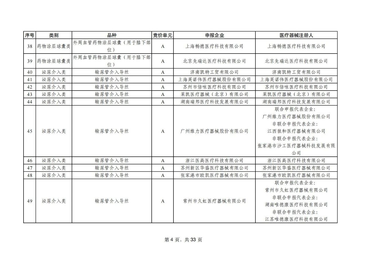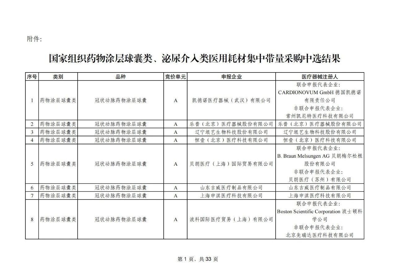 根據(jù)國家組織高值醫(yī)用耗材聯(lián)合采購辦公室(以下簡稱“國家聯(lián)采辦”)今天上午披露,藥物涂層球囊32家企業(yè)的42個產(chǎn)品投標并全部中選,在減輕群眾費用負擔的基礎上,實現(xiàn)了與臨床使用的較高匹配度。泌尿介入類耗材有195家企業(yè)的454個產(chǎn)品投標,170家企業(yè)的398個產(chǎn)品中選。此外,具有特殊功能的藥物刻痕球囊、測壓軟鏡導管等生產(chǎn)企業(yè)均中選,能夠有效滿足臨床特殊場景使用需求。國家聯(lián)采辦表示,本次中選結果公示后將于近期正式發(fā)布,預計2026年5月前后實施中選結果。