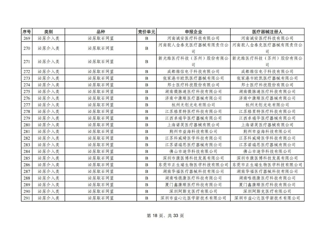 泌尿介入類耗材用于腎結石、輸尿管結石患者取石手術,不同手術方案使用不同類型的耗材,涉及產(chǎn)品復雜,此前是集采“空白區(qū)”。根據(jù)中選情況,此次泌尿介入類產(chǎn)品中選率達87.6%。