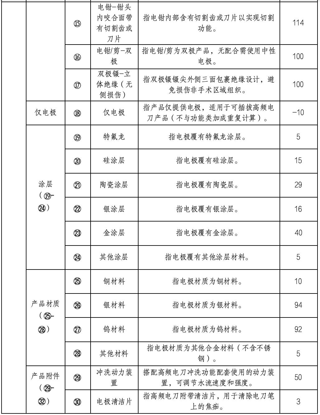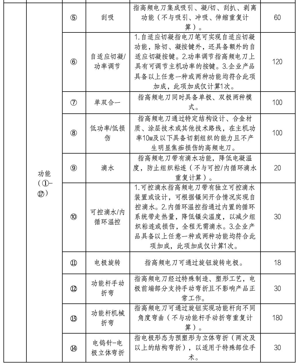 值得注意的是,本輪集采設(shè)置中選產(chǎn)品加成規(guī)則,伸縮、沖吸、照明、電極旋轉(zhuǎn)、涂層材料等均被列入加成項(xiàng),且明確了具體加成金額。