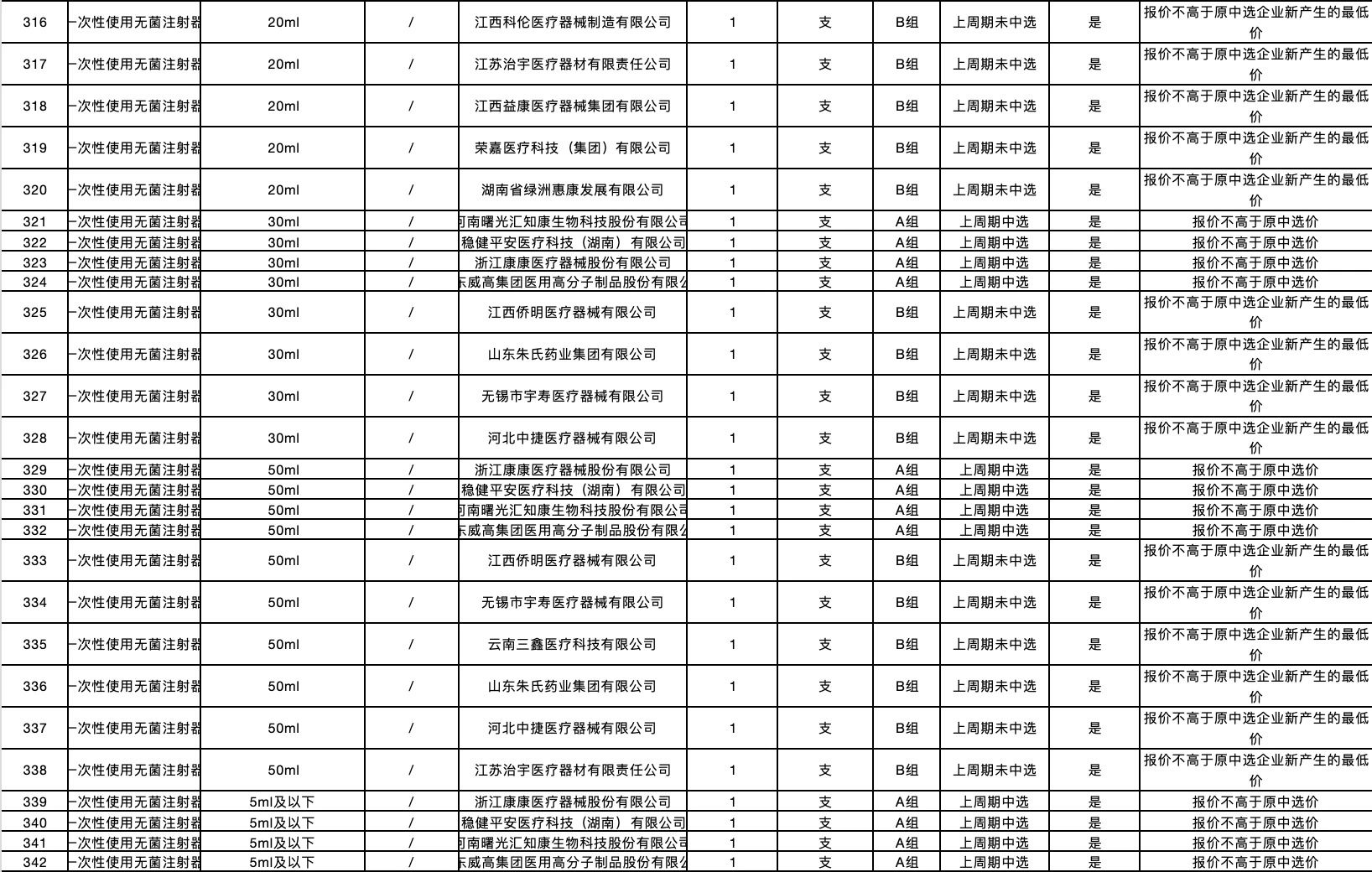 按照采購文件關(guān)于報(bào)價(jià)的規(guī)定,24個(gè)采購品種分47個(gè)產(chǎn)品分類進(jìn)行報(bào)價(jià),擬中選情況如下: