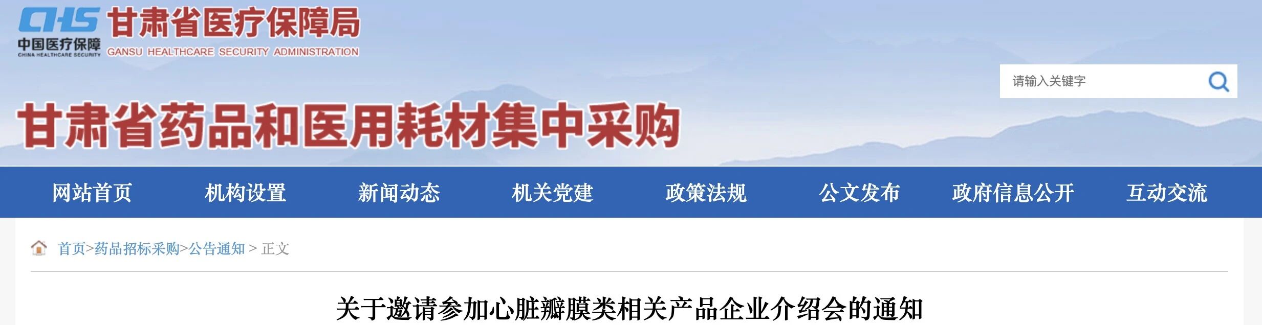 10月31日,甘肅醫(yī)保局發(fā)布《關(guān)于邀請參加心臟瓣膜類相關(guān)產(chǎn)品企業(yè)介紹會的通知》(簡稱《通知》)。