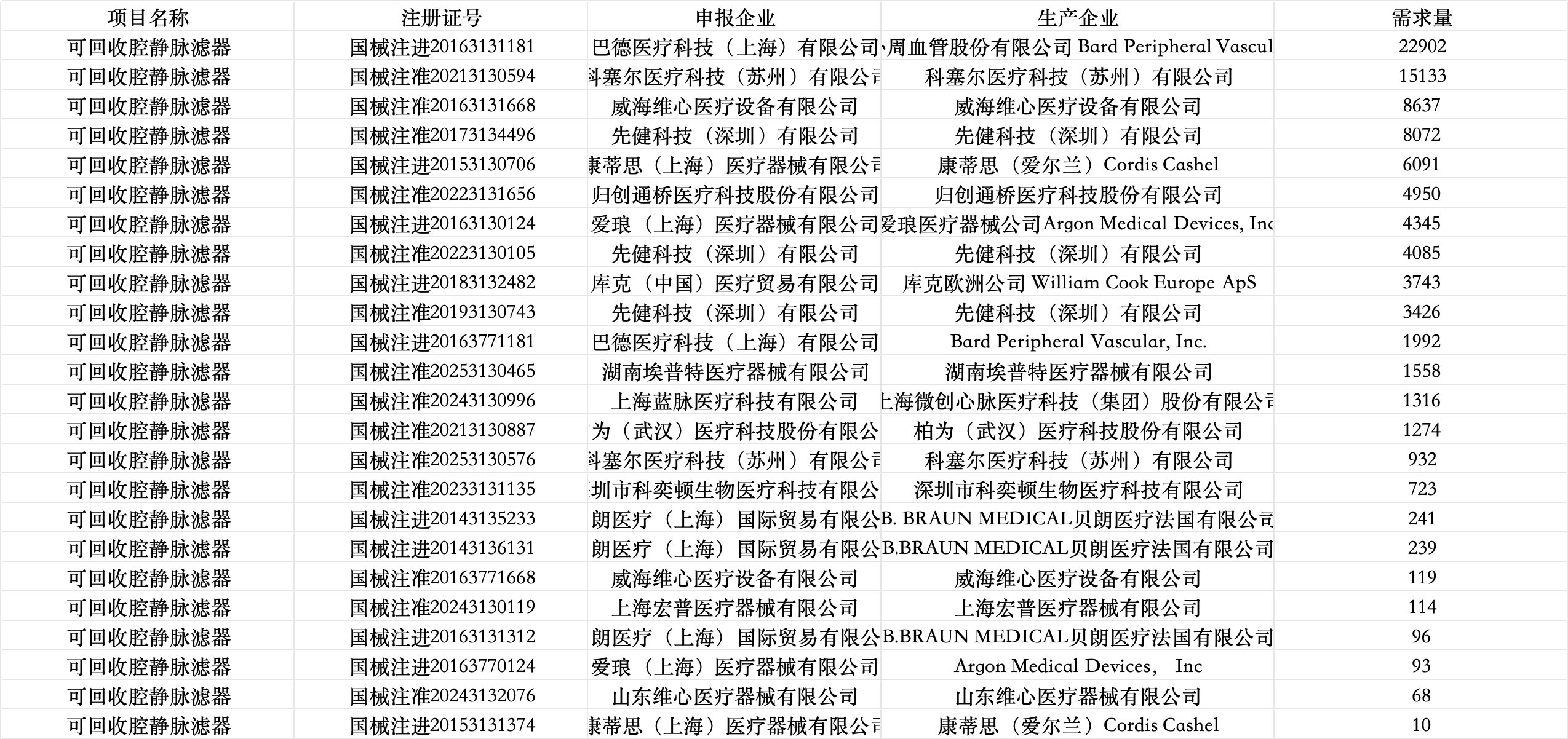 在外周介入領(lǐng)域,腔靜脈濾器屬于國產(chǎn)化程度較高的品類,除了先健科技、科塞爾、歸創(chuàng)通橋等已經(jīng)站穩(wěn)腳跟的頭部企業(yè)外,新晉玩家數(shù)量也在持續(xù)攀升。