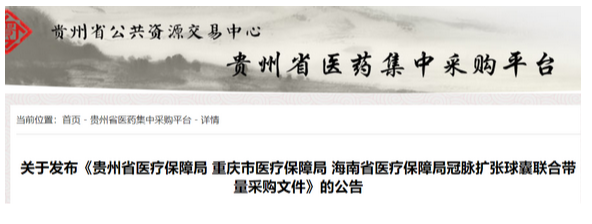 8月20日,貴州省醫(yī)藥集中采購(gòu)平臺(tái)發(fā)布《貴州省醫(yī)療保障局 重慶市醫(yī)療保障局 海南省醫(yī)療保障局冠脈擴(kuò)張球囊聯(lián)合帶量采購(gòu)文件》(下稱(chēng)《采購(gòu)文件》)。