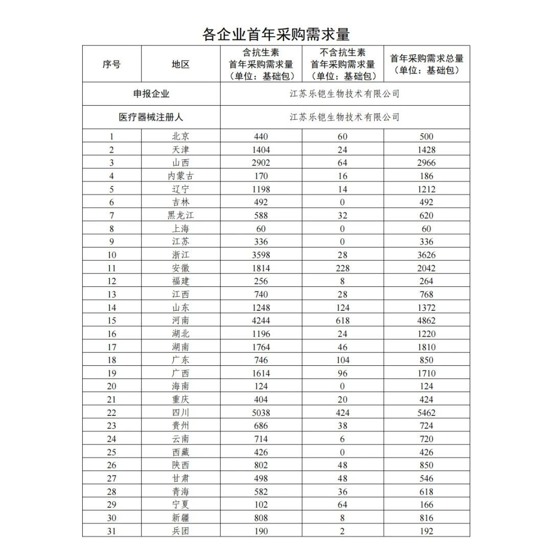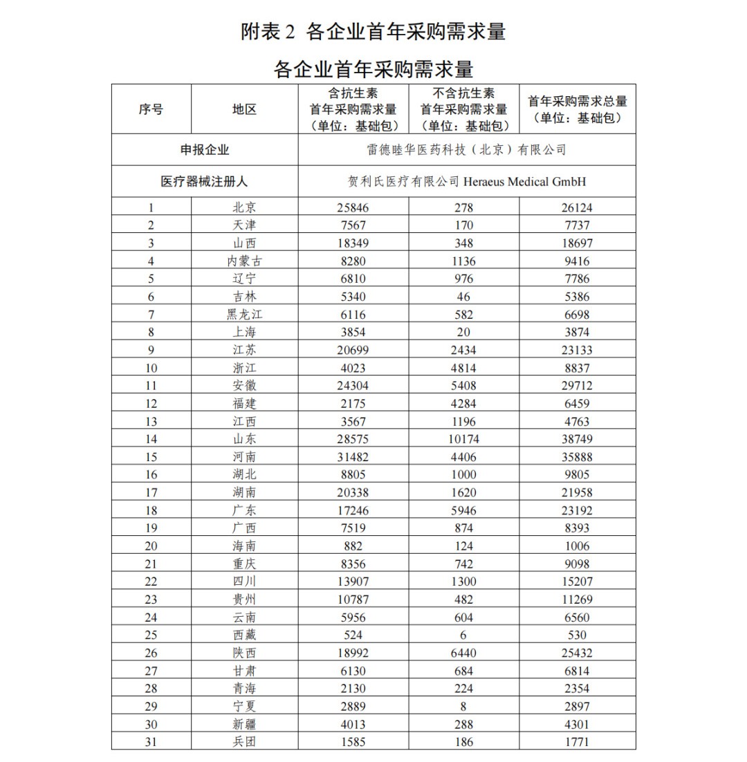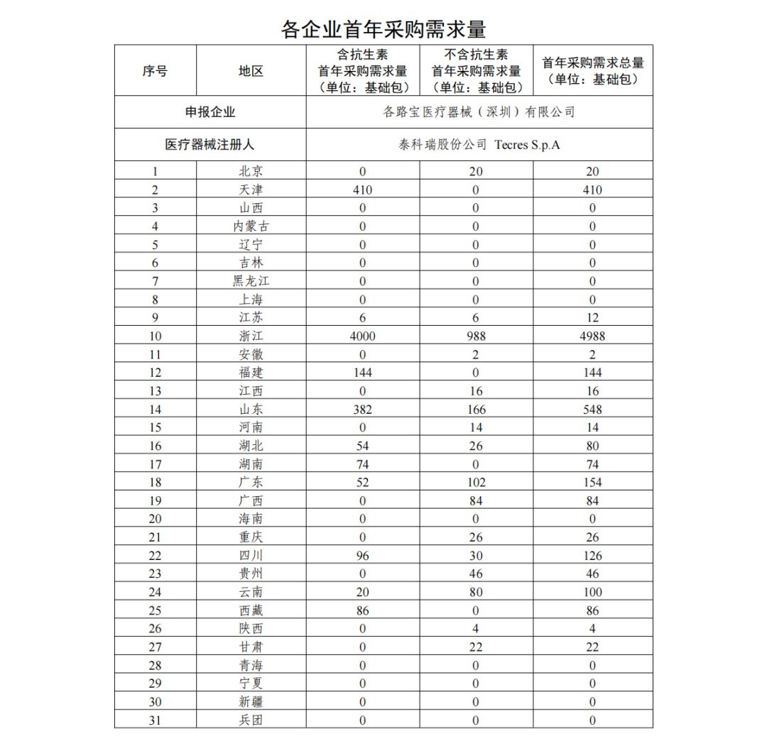 隨《公告》發(fā)布的正式版《采購文件》,公布了聯(lián)盟各地區(qū)首年采購需求量明細(xì)表,部分截圖如下(完整見文末)。