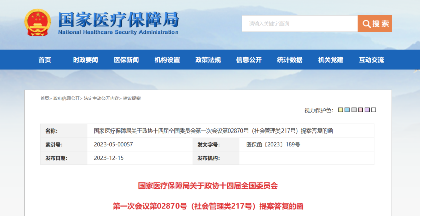 近日,國家醫(yī)保局發(fā)布《國家醫(yī)療保障局關(guān)于政協(xié)十四屆全國委員會第一次會議第02870號(社會管理類217號)提案答復(fù)的函》。