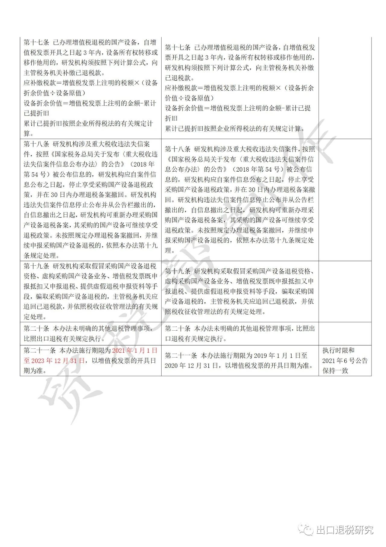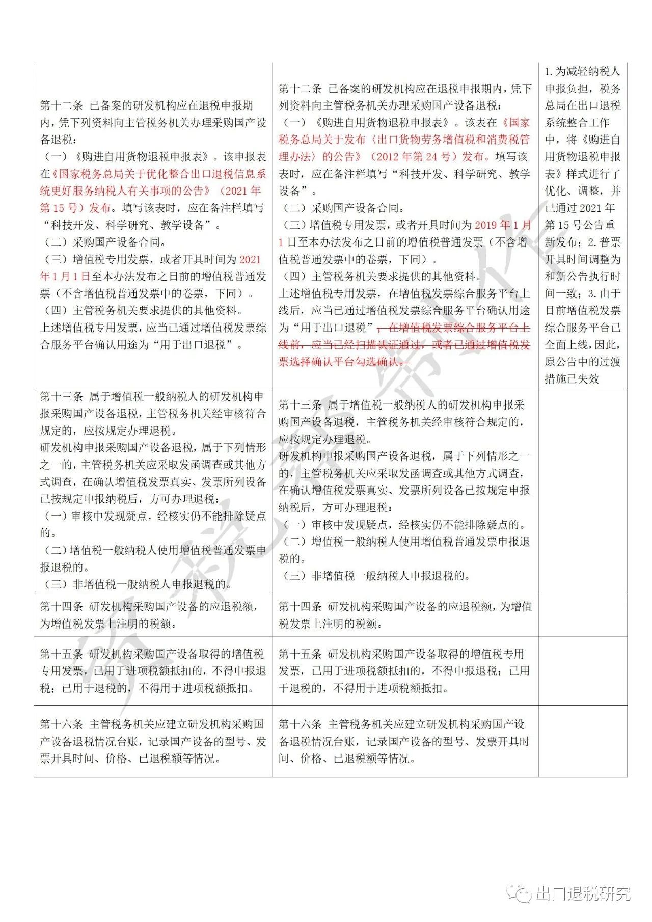 其中,為減輕納稅人申報負擔(dān),總局在出口退稅系統(tǒng)整合工作中,將《購進自用貨物退稅申報表》樣式進行了優(yōu)化、調(diào)整,并已通過《國家稅務(wù)總局關(guān)于優(yōu)化整合出口退稅信息系統(tǒng)更好服務(wù)納稅人有關(guān)事項的公告》(2021年第15號)明確。因此,研發(fā)機構(gòu)申報退稅時,應(yīng)使用總局公告2021年第15號明確的《購進自用貨物退稅申報表》,不再使用《國家稅務(wù)總局關(guān)于發(fā)布<出口貨物勞務(wù)增值稅和消費稅管理辦法>的公告》(2012年第24號)所附的《購進自用貨物退稅申報表》。
