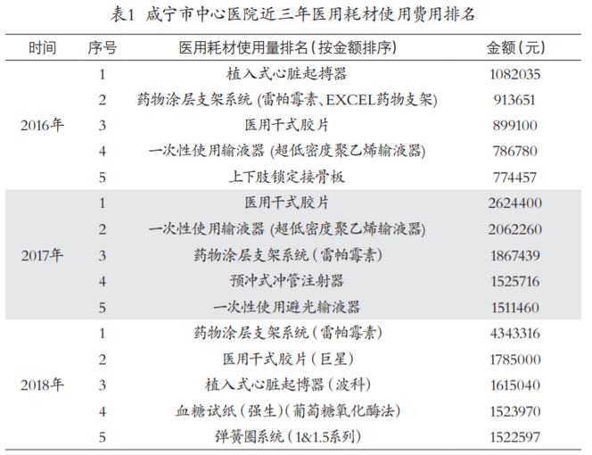 湖北科技學(xué)院和咸寧市醫(yī)保局曾發(fā)布文章,公布這樣一組數(shù)據(jù):以全市最大公立醫(yī)療機構(gòu)咸寧市中心醫(yī)院為例,2016-2018年醫(yī)用耗材使用總費用分別為7099.17萬元、7128.02萬元、11128.33萬元。2017、2018年較2016年分別增長4.06%、56.75%。