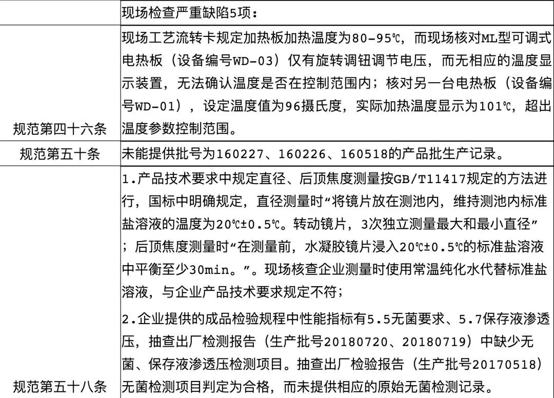 2018年7月24-25日,國家藥品監(jiān)督管理局對青島紐巴依歐光學(xué)制造有限公司進行了飛檢,現(xiàn)場檢查發(fā)現(xiàn)5項嚴重缺陷: