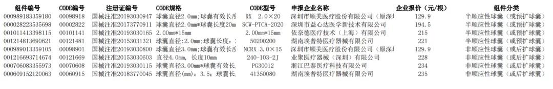 《公示》顯示,本次冠脈擴張球囊擬中選企業(yè)包括深圳市順美醫(yī)療股份有限公司、深圳市益心達醫(yī)學新技術有限公司、依奈德醫(yī)療技術(上海)有限公司等,上述三家企業(yè)報價分別為129.9元、194.5元、215元。