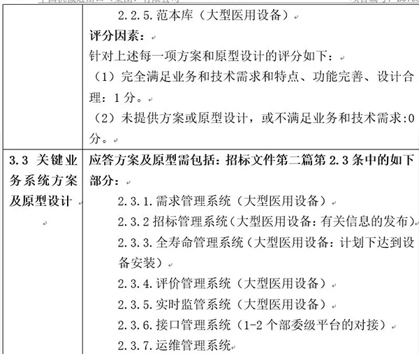 從招標(biāo)文件看,該平臺就是要對大型醫(yī)用設(shè)備進(jìn)行招投標(biāo)管理的。