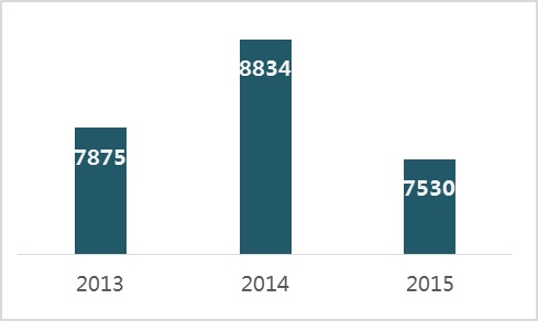 2015年,食品藥品監(jiān)管總局共批準醫(yī)療器械注冊7530項。其中,首次注冊2707項,延續(xù)注冊4072項,許可事項變更注冊751項。與2013、2014年相比,注冊批準總數量略有下降。
