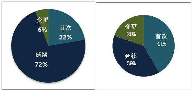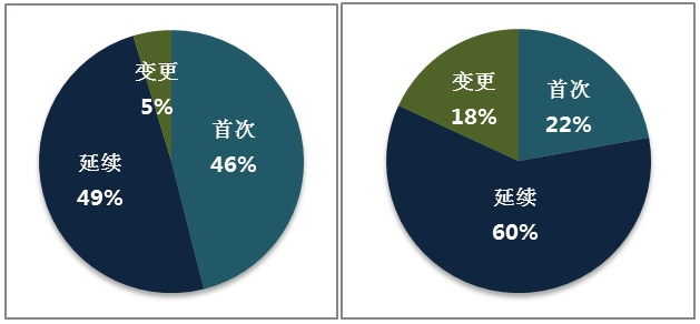綜上,境內第三類體外診斷試劑首次注冊申請數量多于延續(xù)注冊數量外,境內第三類醫(yī)療器械、進口醫(yī)療器械和體外診斷試劑均是延續(xù)注冊申請數量多于首次注冊申請數量。而無論是境內第三類還是進口醫(yī)療器械,其許可事項變更注冊申請大致相當,均為20%左右。