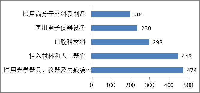 注冊數量前五位的進口醫(yī)療器械,主要是:醫(yī)用光學器具、儀器及內窺鏡設備,植入材料和人工器官,口腔科材料,醫(yī)用電子儀器設備,醫(yī)用高分子材料及制品。