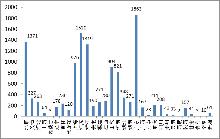 圖14.境內第二類醫(yī)療器械省份注冊數據圖