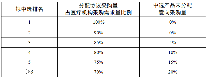 1、同一競價單元中選企業(yè)按中選排名順序,分配協(xié)議采購量;