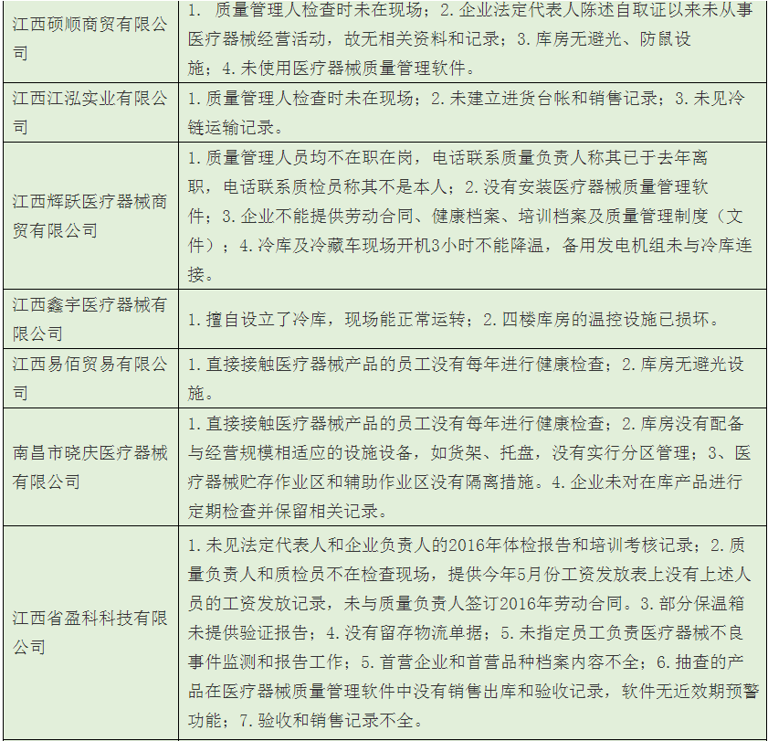 歸結(jié)起來(lái),南昌市藥監(jiān)局經(jīng)過(guò)飛檢后發(fā)現(xiàn),該市械商主要存在以下6方面的不依法經(jīng)營(yíng)或者不符合醫(yī)械GSP要求問(wèn)題: