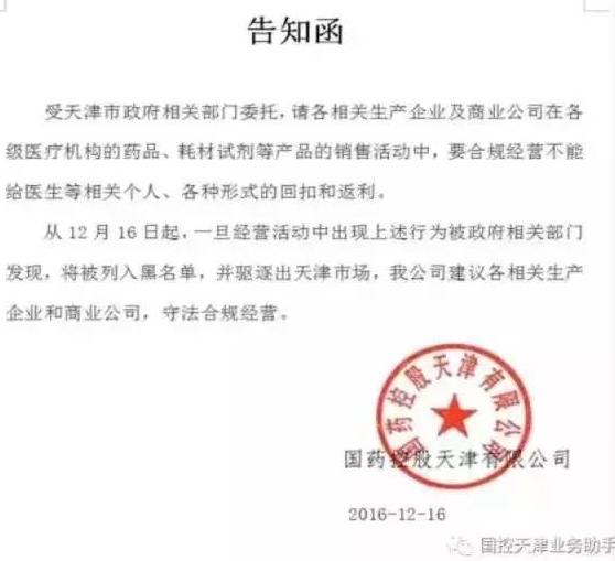 兩大商業(yè)巨頭的通知發(fā)出時間一致,內(nèi)容也高度一致,應(yīng)都是與天津市衛(wèi)計(jì)委掀起的行風(fēng)大整肅專項(xiàng)工作有關(guān)。而天津市坊間近期也正在流傳一事,“天津有醫(yī)院院長正在被實(shí)名舉報(bào)”。