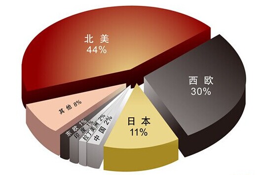 從全球體外診斷試劑市場(chǎng)劃分來看,最大的體外診斷試劑市場(chǎng)為北美地區(qū),占了44%,而西歐市場(chǎng)占據(jù)了30%,亞洲的日本和中國分別占有11%和2%。