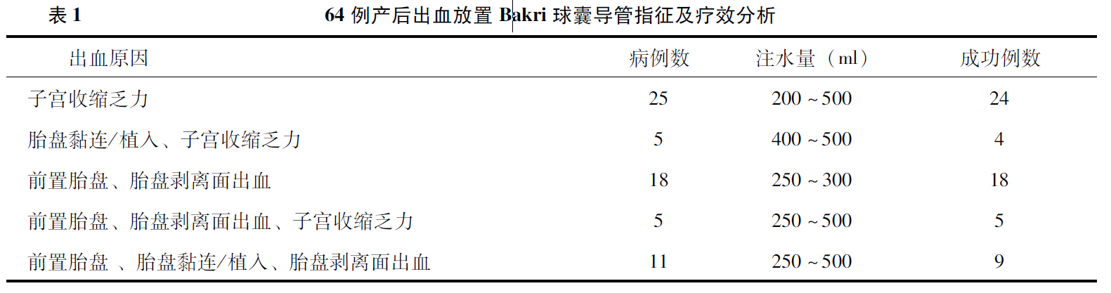 三、64例放置Bakri球囊導(dǎo)管指征及療效分析