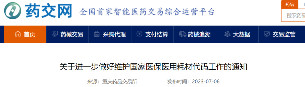 7月6日,重慶藥品交易所發(fā)布《關于進一步做好維護國家醫(yī)保醫(yī)用耗材代碼工作的通知》。