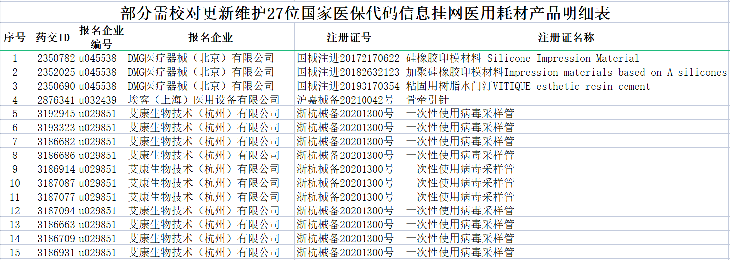 《通知》明確,2023年7月13日至2023年7月27日,尚未在省平臺醫(yī)用耗材交易系統(tǒng)維護國家醫(yī)保代碼但已通過國家醫(yī)保信息業(yè)務(wù)編碼標準數(shù)據(jù)庫動態(tài)維護平臺(以下簡稱國家醫(yī)保編碼信息平臺)動態(tài)維護審核的掛網(wǎng)醫(yī)用耗材,應(yīng)維護產(chǎn)品對應(yīng)的20位/27位國家醫(yī)保代碼。