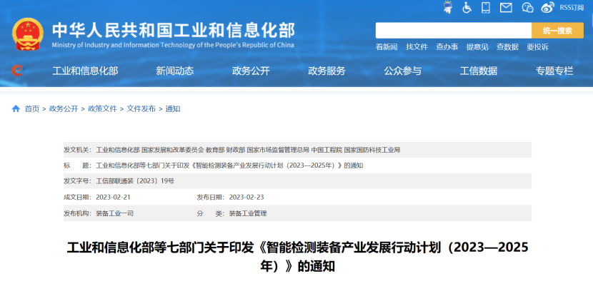 2月23日,工信部等七部門發(fā)布《智能檢測裝備產(chǎn)業(yè)發(fā)展行動計劃(2023—2025年)》(以下簡稱《行動計劃》)。