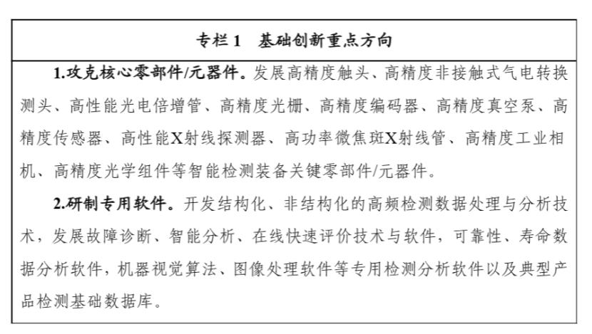 《行動計劃》指出,實施產(chǎn)業(yè)基礎創(chuàng)新工程,建立以企業(yè)為主體、市場為導向、知識產(chǎn)權利益分享機制為紐帶、政產(chǎn)學研用協(xié)同的智能檢測裝備產(chǎn)業(yè)創(chuàng)新體系,建設一批技術創(chuàng)新機構,加強智能檢測理論方法、先進檢測技術研究和科技創(chuàng)新成果轉化,突破一批關鍵核心零部件和專用軟件,增強產(chǎn)業(yè)鏈供應鏈韌性和安全水平。