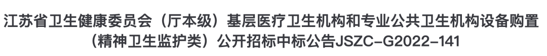 近日,江蘇省衛(wèi)生健康委員會(廳本級)江蘇省基層醫(yī)療衛(wèi)生機構(gòu)和專業(yè)公共衛(wèi)生機構(gòu)設(shè)備購置項目中標結(jié)果公布。