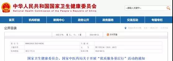 為深入貫徹落實黨的十九大和《“健康中國”2030規(guī)劃綱要》精神,持續(xù)提升基層服務(wù)能力,改善服務(wù)質(zhì)量,國家衛(wèi)生健康委、國家中醫(yī)藥局決定開展“優(yōu)質(zhì)服務(wù)基層行”活動?,F(xiàn)將有關(guān)事項通知如下: