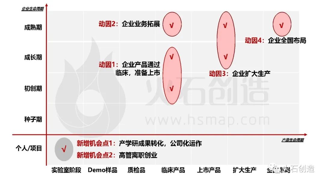 從企業(yè)生命周期來(lái)看,處于不同生命周期的企業(yè)都會(huì)有投資選址的需求。從企業(yè)發(fā)展所處的階段,我們可以把生物醫(yī)藥和醫(yī)療器械企業(yè)投資選址行為按照企業(yè)規(guī)模的維度,劃分為四種類(lèi)型:孵化辦公室選址,小規(guī)模產(chǎn)業(yè)化租用廠房選址,(大型)企業(yè)規(guī)模化自建廠房選址以及區(qū)域中心選址。