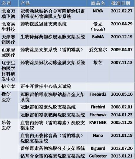 圖2 冠脈藥物洗脫支架部分國內(nèi)產(chǎn)品