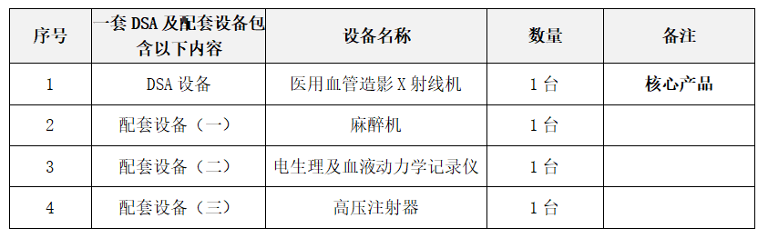 (注:本項目上述清單中“醫(yī)用血管造影X射線機”為本項目核心產品。投標人提供核心產品品牌均相同且通過資格審查、符合性審查的不同投標人參加同一合同項下投標人,按一家投標人計算,評審后得分最高的同品牌供應商獲得中標人推薦資格,其他同品牌投標人不作為中標候選人。經評委會審查,參與投標的核心產品品牌少于3個的,本項目作廢標處理。)