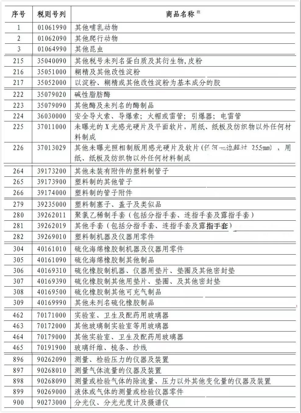 附件4所涉及的生物試劑和實驗室常用物品(加征5%的關(guān)稅)