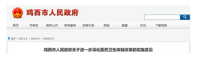 11月15日,雞西市人民政府發(fā)布了《關(guān)于進(jìn)一步深化醫(yī)藥衛(wèi)生體制改革的實(shí)施意見》(以下簡(jiǎn)稱《意見》)。