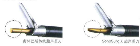 SonoSurg X 超聲剪刀先端與奧林巴斯傳統(tǒng)產(chǎn)品相比更細(xì)長,提高了精細(xì)抓取和分離操作的簡便性。