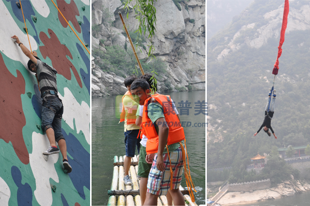 在青龍峽景區(qū),同事們整裝待發(fā),在淺水區(qū)進行竹伐比賽,很多同事都成了“落湯雞”呢,也有喜歡刺激的同事,體驗了蹦極跳、攀巖。同事們表現(xiàn)出各種勇敢,各種智謀,這正體現(xiàn)了華康普美這一年輕團隊的活力、朝氣蓬勃!