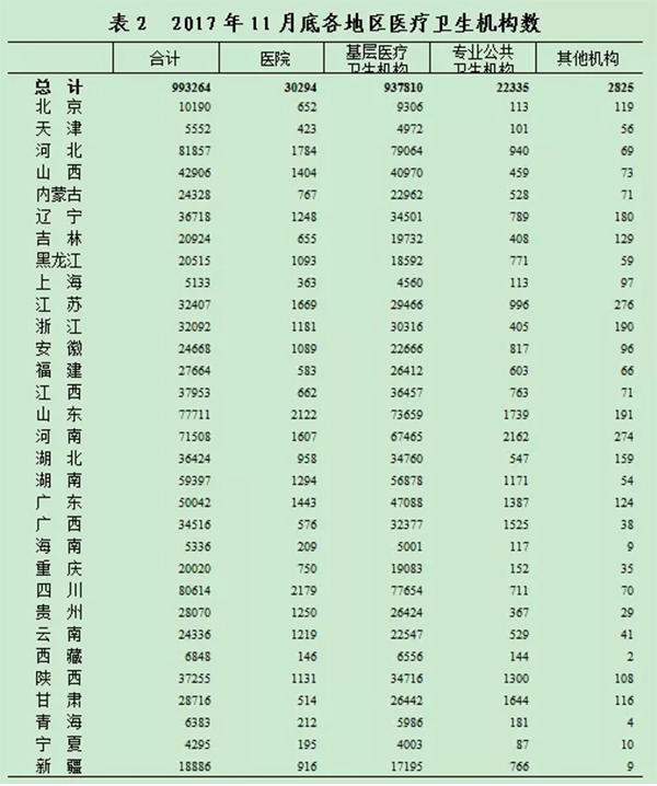 2017年1-11月全國醫(yī)療衛(wèi)生機(jī)構(gòu)數(shù)