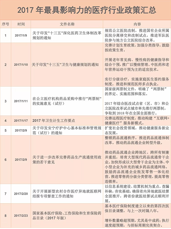 2017年最具影響力的醫(yī)療行業(yè)政策匯總!