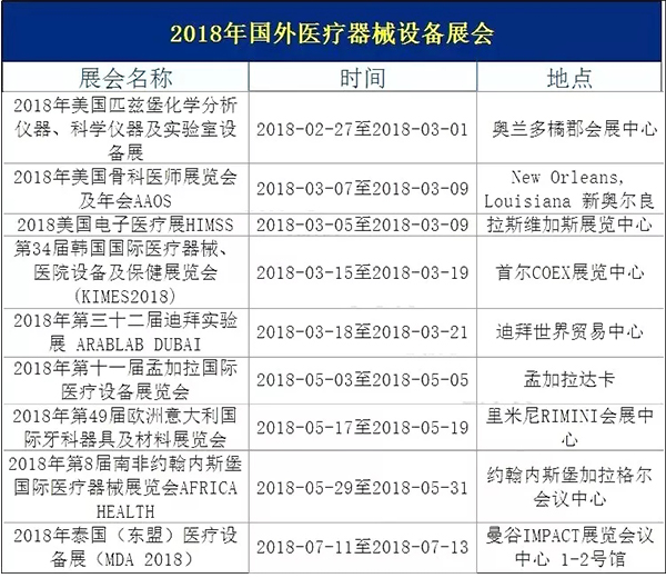 珍藏!2018年全球醫(yī)療器械相關(guān)展會(huì)匯總(國(guó)內(nèi)33場(chǎng)、國(guó)外9場(chǎng))??!