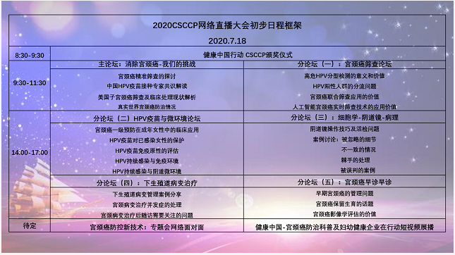 由中國優(yōu)生科學(xué)協(xié)會(huì)陰道鏡和宮頸病理學(xué)分會(huì)(CSCCP)、婦幼健康研究會(huì)宮頸癌防控研究專業(yè)委員會(huì)、《中國婦產(chǎn)科臨床雜志》社主辦、北京大學(xué)婦產(chǎn)科學(xué)系、北京大學(xué)人民醫(yī)院承辦、國家衛(wèi)生健康委百姓健康電視頻道(CHTV)婦幼健康分頻道、華醫(yī)智庫婦產(chǎn)科頻道協(xié)辦的2020CSCCP大會(huì)將在2020.7.18以網(wǎng)絡(luò)直播的形式召開。為貫徹落實(shí)《國務(wù)院關(guān)于實(shí)施健康中國行動(dòng)的意見》、《健康中國行動(dòng)(2019-2030)》,此次大會(huì)作為健康中國行動(dòng)(2019-2030)一周年活動(dòng),會(huì)議主題為:“消除宮頸癌,7.18共行動(dòng)”。