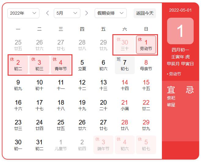 五一勞動(dòng)節(jié)假期安排見(jiàn)下圖: