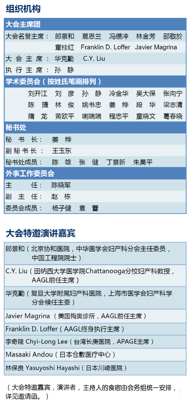 我們謹(jǐn)代表中美婦科內(nèi)鏡高峰論壇組委會,誠摯地歡迎各位婦產(chǎn)科界同道參加2015年9月25-26日在上海國際會議中心召開的“中美婦科內(nèi)鏡高峰論壇”(AAGL上海區(qū)域會議)!