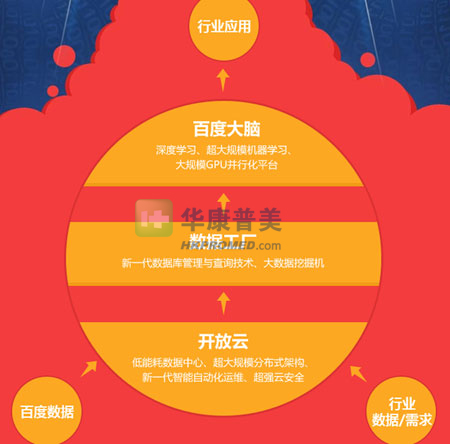 開放云指的是這套引擎的基礎(chǔ)架構(gòu)——分布式的低能耗數(shù)據(jù)中心,也就是前文提到的硬件部分。其中包括數(shù)據(jù)中心的服務(wù)器設(shè)計、數(shù)據(jù)中心規(guī)劃和設(shè)計、分布式系統(tǒng)、超大規(guī)模集群自動化運維、大規(guī)模GPU并行化平臺等。其次是數(shù)據(jù)工廠,它可以支持超大規(guī)模的異構(gòu)數(shù)據(jù)查詢和大數(shù)據(jù)分析,也就是調(diào)用硬件,來完成數(shù)據(jù)的挖掘和分析。而百度大腦,其實是對單集群規(guī)模數(shù)據(jù)能力的擴展——基于深度學(xué)習(xí)技術(shù),讓機器模擬人類大腦多層神經(jīng)元的思維模式做出預(yù)測模型。