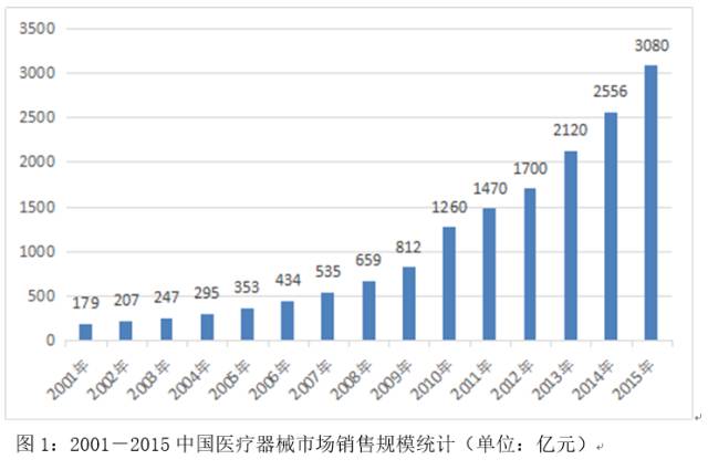 據(jù)中國醫(yī)藥物資協(xié)會醫(yī)療器械分會抽樣調(diào)查統(tǒng)計,2015全年中國醫(yī)療器械市場銷售規(guī)模約為3080億元,比2014年度的2556億元增長了524億元,平均增長率約為20.05%。